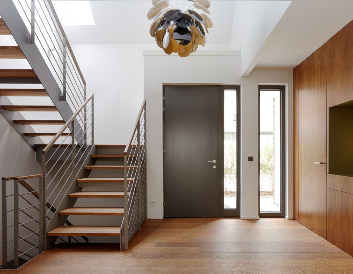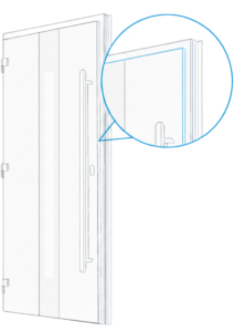 Wide glazing units, 48-mm HPL panels, and specifically configured thresholds bring the WDS 76 doors’ heat conservation on par with windows, with Uf reaching $1.3\ W/m^2K$—the level that satisfies the current industry regulations. • Meanwhile, tight closing ensures the doors’ high air permeability class.